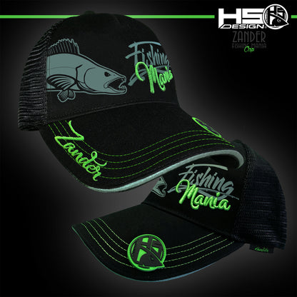 Cap Fishing Mania in 55% cotton and 45% polyester, black color, unisex, one size fits all.